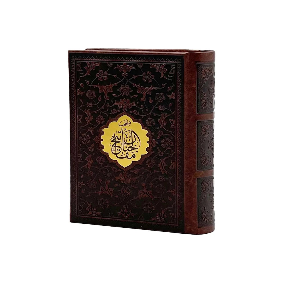✨ جلد چرمی ساده با دوخت تمیز و ظاهری آراسته، همراه با چاپ داخلی رنگی و لبههای رنگی زیبا، این کتاب را به گزینهای جذاب و آبرومند برای کادو، هدیه یا وقف در مجالس ترحیم تبدیل کرده است.