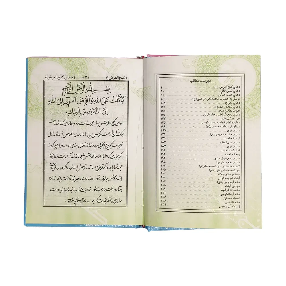 کتاب گنجالعرش، مجموعهای معنوی و دعاگونه است که معمولاً برای رفع گرفتاریها، افزایش رزق، آمادگی برای پاسخ به مشکلات و کسب آرامش خوانده میشود. این نسخه ویژه، با خط خوانای جُندقی و ترجمه روان مرندی، در قطع جیبی (۱۲ × ۱۷ سانتیمتر) و با جلد نرم شومیز ارائه شده و مناسب برای حمل روزانه و هدیهدادن است.