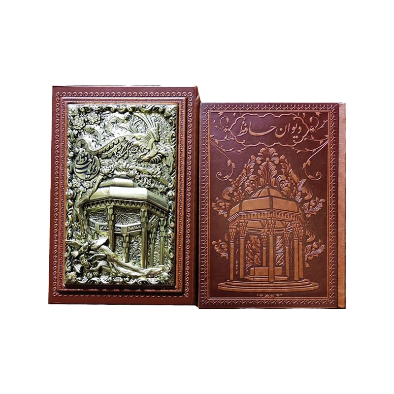 📖 دیوان حافظ جیبی گلاسه چرم قابدار کشویی طرح مس