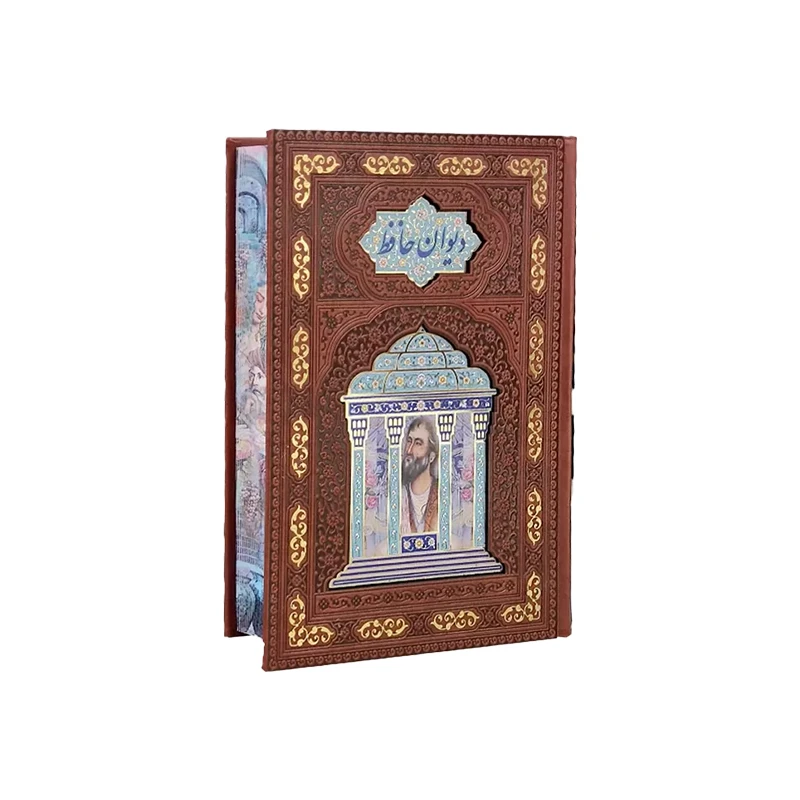 💖 خرید دیوان حافظ وزیری گلاسه قابدار با جلد چرمی و پلاک طرح مقبره