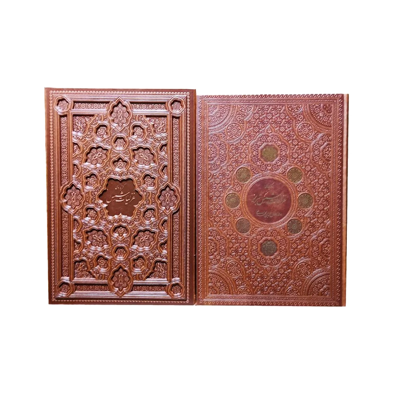 این اثر ارزشمند با قطع رحلی بزرگ (25 × 35 سانتیمتر) 📏 طراحی شده است و جلوهای لوکس و باشکوه به هر فضای فرهنگی یا هنری میبخشد. جلد این کتاب از چرم مصنوعی برجسته (لیزری) 🪡 با طراحی نفیس و قابدار کشویی ساخته شده که علاوه بر زیبایی، دوام و استحکام بالایی دارد. وجود قاب کشویی شیک 💼 باعث محافظت بهتر از کتاب شده و آن را به هدیهای خاص و چشمگیر برای مناسبتهای رسمی و مذهبی 🎁 تبدیل میکند.