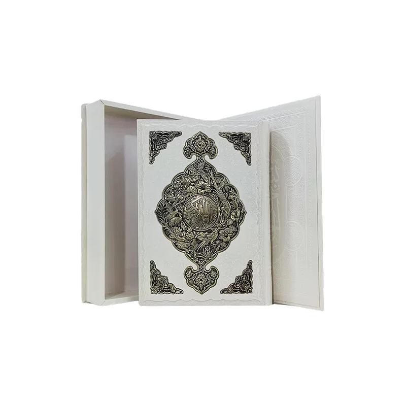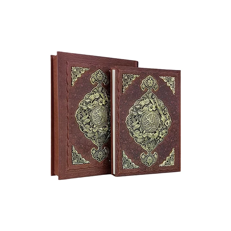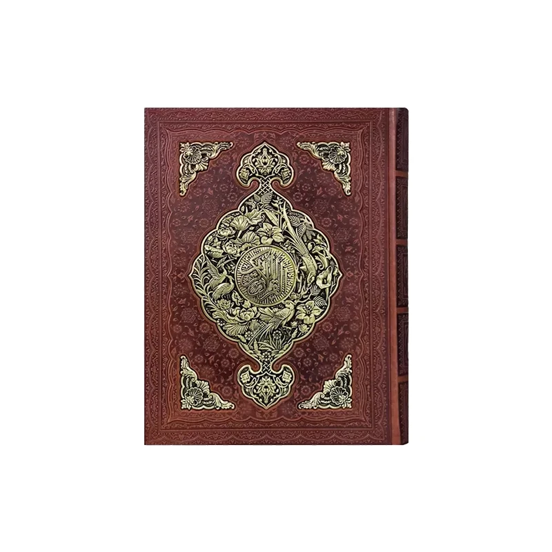 - جلد چرمی برجسته با تکنیک لیزری: نقوش اسلیمی/قرآنی با بافت ملموس و ماندگار