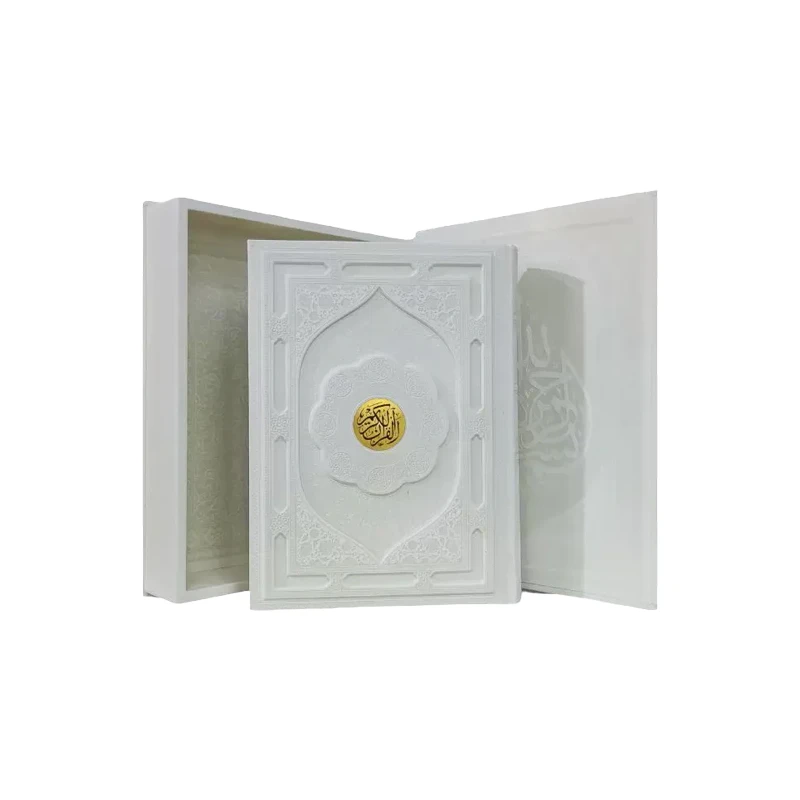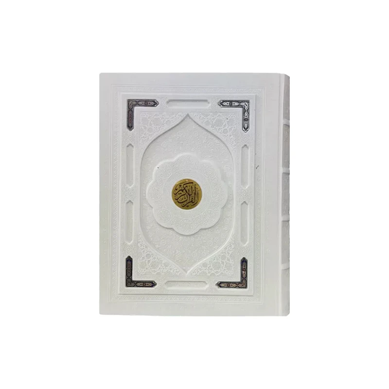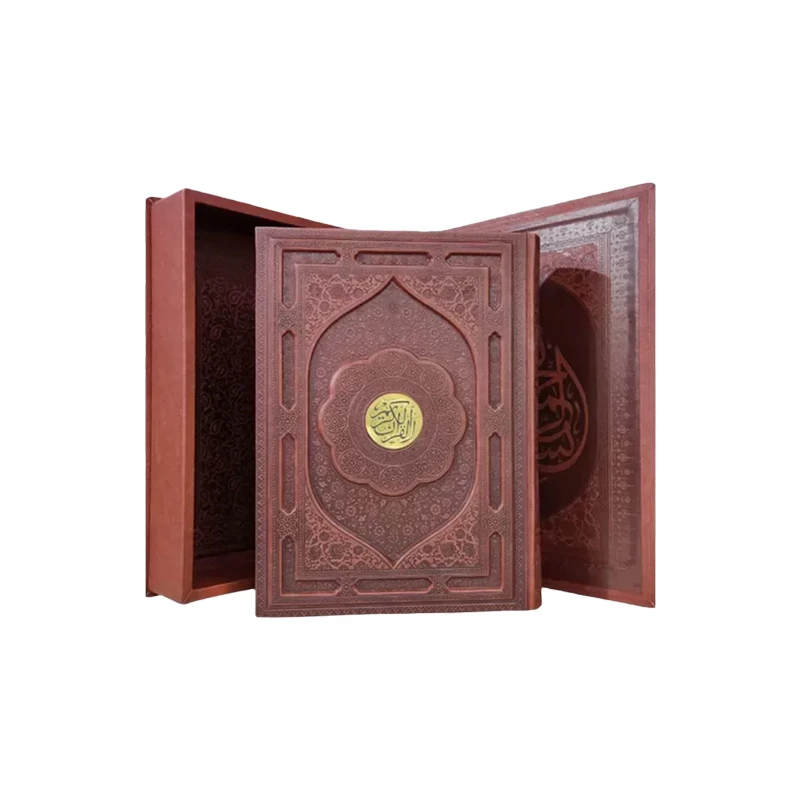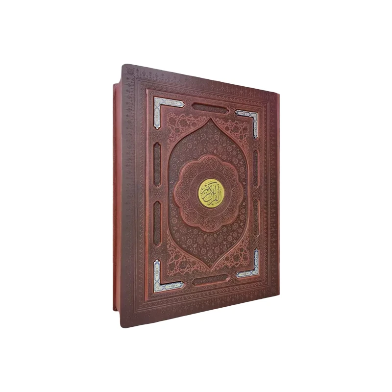 - جلد چرمی برجسته (لیزری) با نقوش اسلیمی و ظرافت هنری بالا