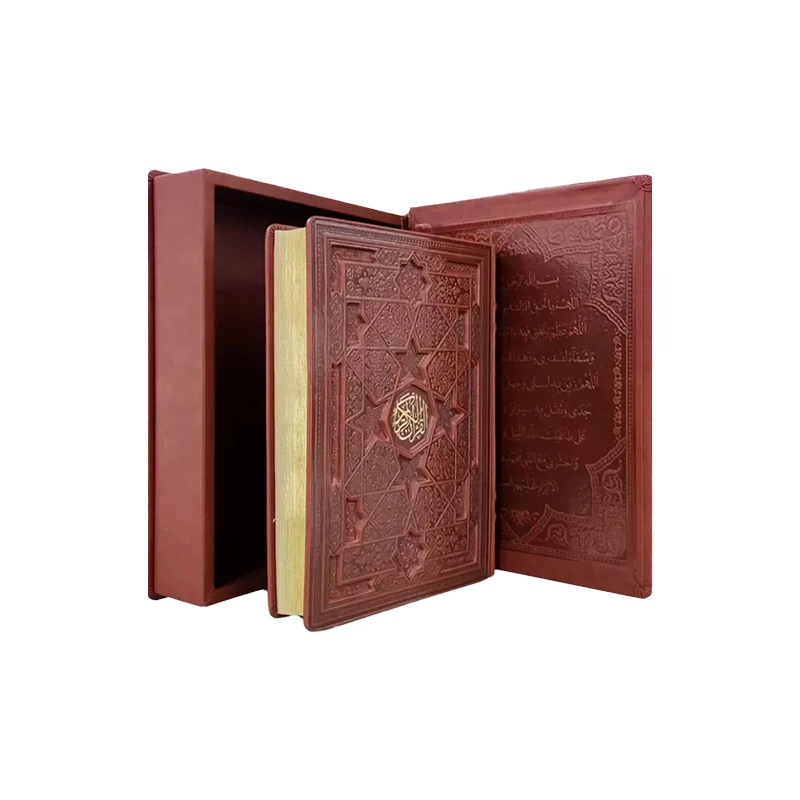 این قرآن نفیس با جلد چرمی ترمو طرح برجسته لیزری و قاب جعبهای بازشو عرضه میشود که جلوهای باشکوه و ارزشمند به آن میبخشد. کاغذ معطر آلمانی طرح ابر و باد نه تنها حس خوشایندی هنگام ورقزدن ایجاد میکند، بلکه رایحهای لطیف و دلنشین را نیز به همراه دارد.