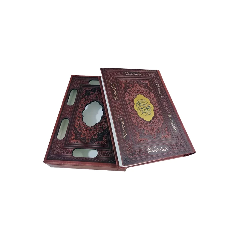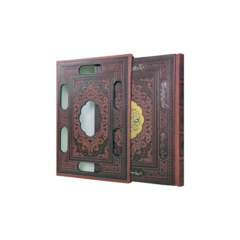 📚 این نسخه نفیس در قطع وزیری با ابعاد استاندارد ۲۵.۵ × ۱۸ سانتیمتر چاپ شده و دارای جلد چرمی برجسته (لیزری) بسیار شکیل و حرفهای است. وجود قاب کشویی چرمی MDF، نه تنها از کتاب محافظت میکند، بلکه ظاهری فاخر و لوکس به آن میبخشد.
