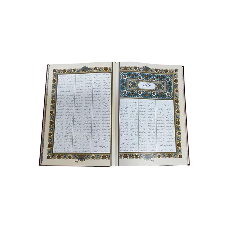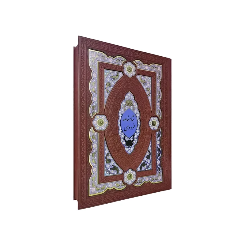 📕 جلد کتاب از چرم مصنوعی نفیس ساخته شده که همراه با یک پلاک فلزی رنگی 🪙 طراحی شده است. این ترکیب لوکس و ماندگار، علاوه بر استحکام، جلوهای هنری و فرهنگی به ظاهر کتاب بخشیده است.