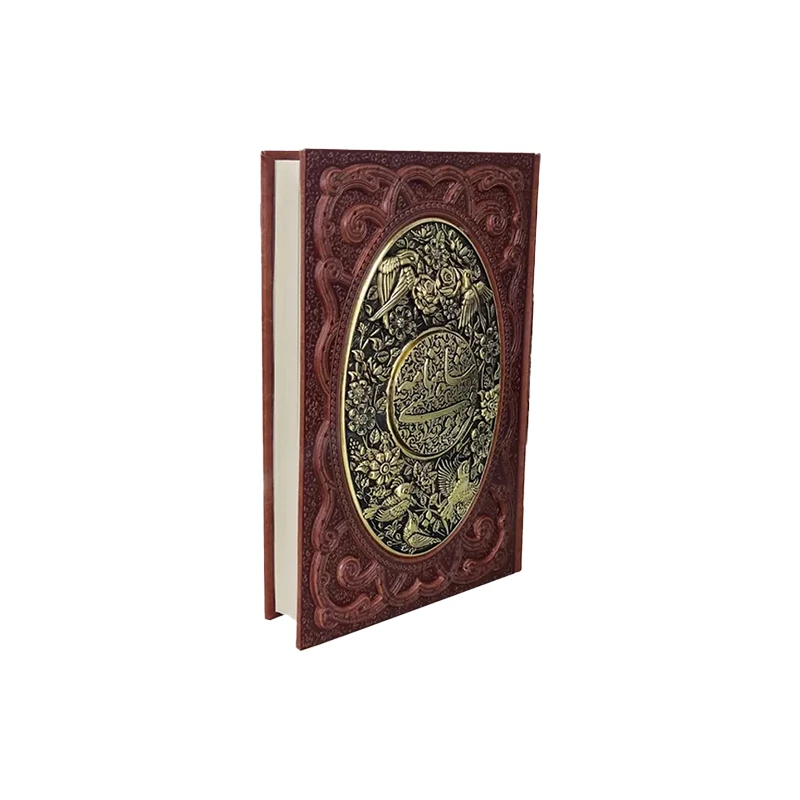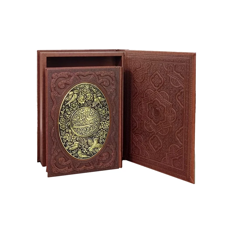 ✨ این نسخهی وزیری، با جلد چرمی برجسته و پلاک فلزی طرح مس، جلوهای اصیل و فاخر دارد. جعبهی صندوقی مقاوم آن نیز علاوه بر محافظت، زیبایی بیشتری به کتاب میبخشد. تمام جزئیات این محصول، از طراحی جلد تا کیفیت کاغذ، با ظرافت و دقت انتخاب شده تا یک کتاب ارزشمند و ماندگار برای نسلها باشد.