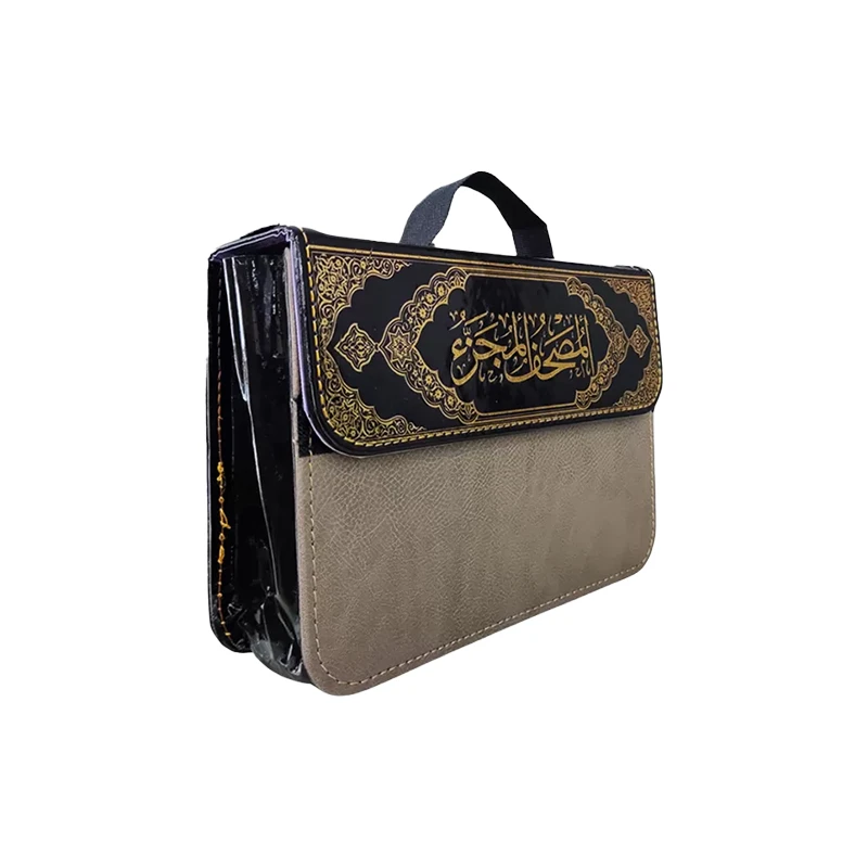 قرآن المصحف المجزء (سی جزء قرآن کریم) نسخهای استاندارد و کاربردی برای هر کسی است که به یک مصحف خوشقلم، خوانا و با قیمت مناسب نیاز دارد. این مجموعه در قطع وزیری و با تعداد صفحات ۶۰۴ به چاپ رسیده و با خط استاد عثمان طه چاپ میشود تا خوانایی متن و دقت قرائت حفظ شود. صحافی شومیز سبک و کمحجم است و کتاب همراه با کیف دو رنگ جدید عرضه میگردد که حمل و نگهداری قرآن را آسان و مرتب میکند. 📖🎒